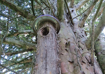 Si, après l’abattage d’un arbre porteur d’un trou de pic, on récupère le tronçon compris entre 10cm au-dessus et 40cm en-dessous du trou d’envol, on s’évite la tâche laborieuse et délicate de l’évidement au ciseau à bois. Mais, il est quand même nécessaire de couper la bûche en deux et d’articuler les deux parties de manière à pouvoir ouvrir ce « nichoir naturel ».