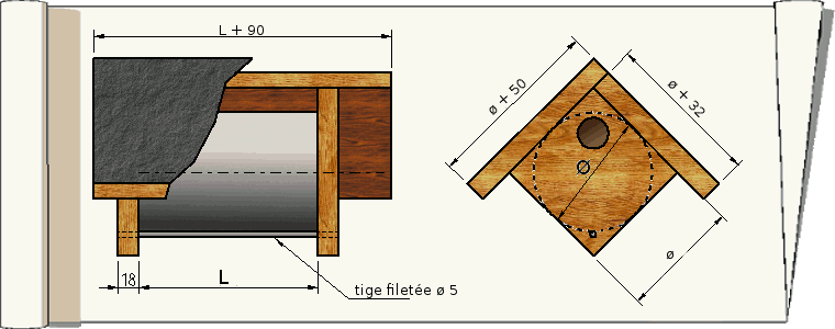 Le trou d'envol sera réservé en glissant dans une maille de grillage un tube ou un cylindre quelconque, fortement huilé, d'un diamètre compris entre 24 et 35mm selon l'espèce que l'on souhaite accueillir.