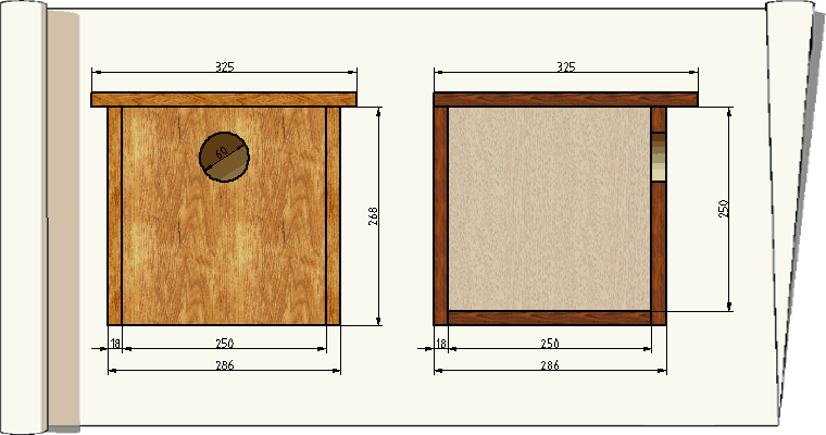 Le nichoir étant à l'abri des intempéries, il est possible d'utiliser du contreplaqué pour sa fabrication.