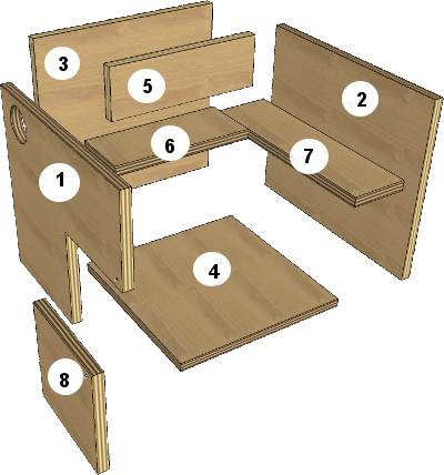 Nichoir obtenu à partir d'une caisse à vin (caisse en bois ayant contenu 12 bouteilles).