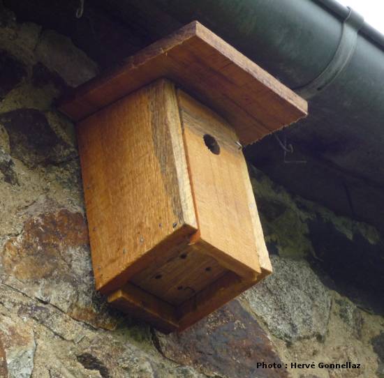 Hervé a choisi de faire ouvrir son nichoir par l'avant. Les pivots de la porte se situent en bas et la fermeture est assurée par un crochet en partie haute.