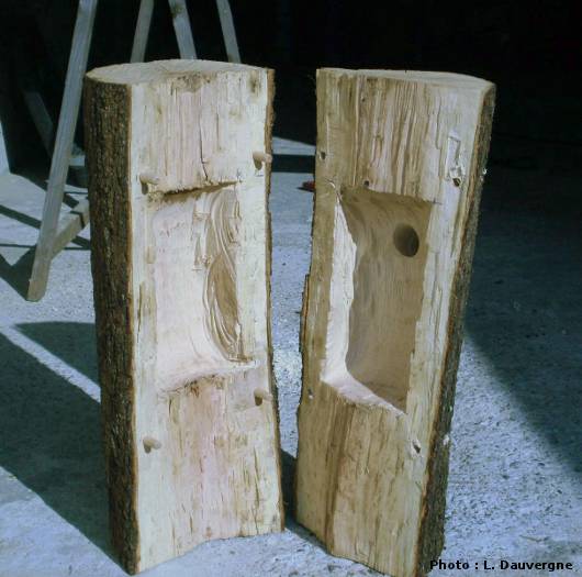 Remarquez les tourillons qui maintiennent en bonne place les deux parties du nichoir.